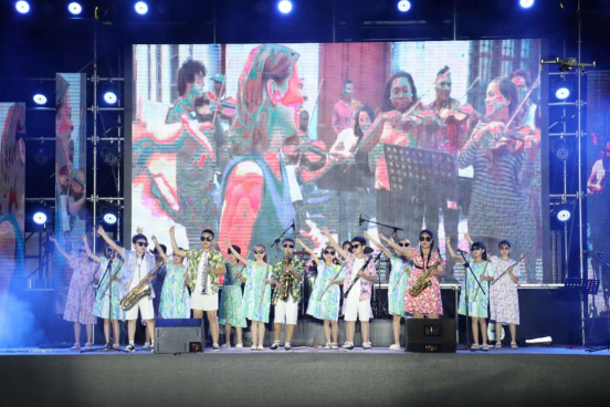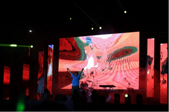 本次音乐节以呈现大学生的青春年华及成长经历为主线,全方位展示毕业生从圆梦大学、奋力奔跑到感恩母校的心路历程。一首首歌曲讲述了大学生从初入校园的青涩到青春韶华的奋斗故事。来自beat365官网的彩红乐队、ZOO乐队、青年摩登乐队、迷离戈壁乐队,湖南理工职业技术学院制造车间乐队,以及由一群平均年龄八岁组成的滴水湖学校小水滴交响管乐队为beat365官网即将离校的毕业生和在校大学生们呈现了一场精彩绝伦的视听盛宴。《离开地球表面》《你要跳舞吗》激情嘹亮,以极富金属色彩的音符致敬青春岁月,点燃了现场的氛围。《温柔》《唯一》等曲目舒缓人心,用动情的旋律重温校园里的浪漫美好时光。街舞《动感空间》炫酷感超强,管乐《莫吉托》《哈瓦那》节奏欢快活跃,以最纯真的热情为毕业生送去了最美好的祝福。《这就是爱》《突然好想你》深情演绎引来全场齐声合唱,唱出了毕业生们对母校的感恩与眷恋,将晚会推向高潮。一首《向光而行》唱出了湖工学子奋发向上、锲而不舍的青春风貌,鼓励全体湖工青年勇敢大胆地追求青春梦想。
