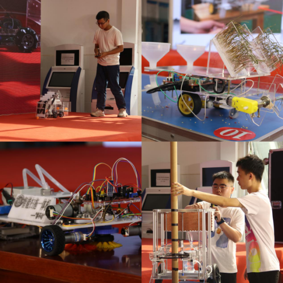 比赛分为现场汇报与实物展示两个环节。比赛开始,参赛的30支队伍代表依次上场就参赛作品的设计背景、工作原理、结构特色等内容进行汇报和现场操作展示。智能拾球小车,家用一体式停车装置……参赛作品创意满满,各具特色。经激烈角逐和现场评委点评、提问、打分,决出了比赛的一、二、三等奖和最佳人气奖、优秀指导老师、优秀组织奖、优秀主持人奖。机械学院院长陈国强主持现场颁奖仪式,大赛评委与受邀嘉宾为获奖师生颁奖。