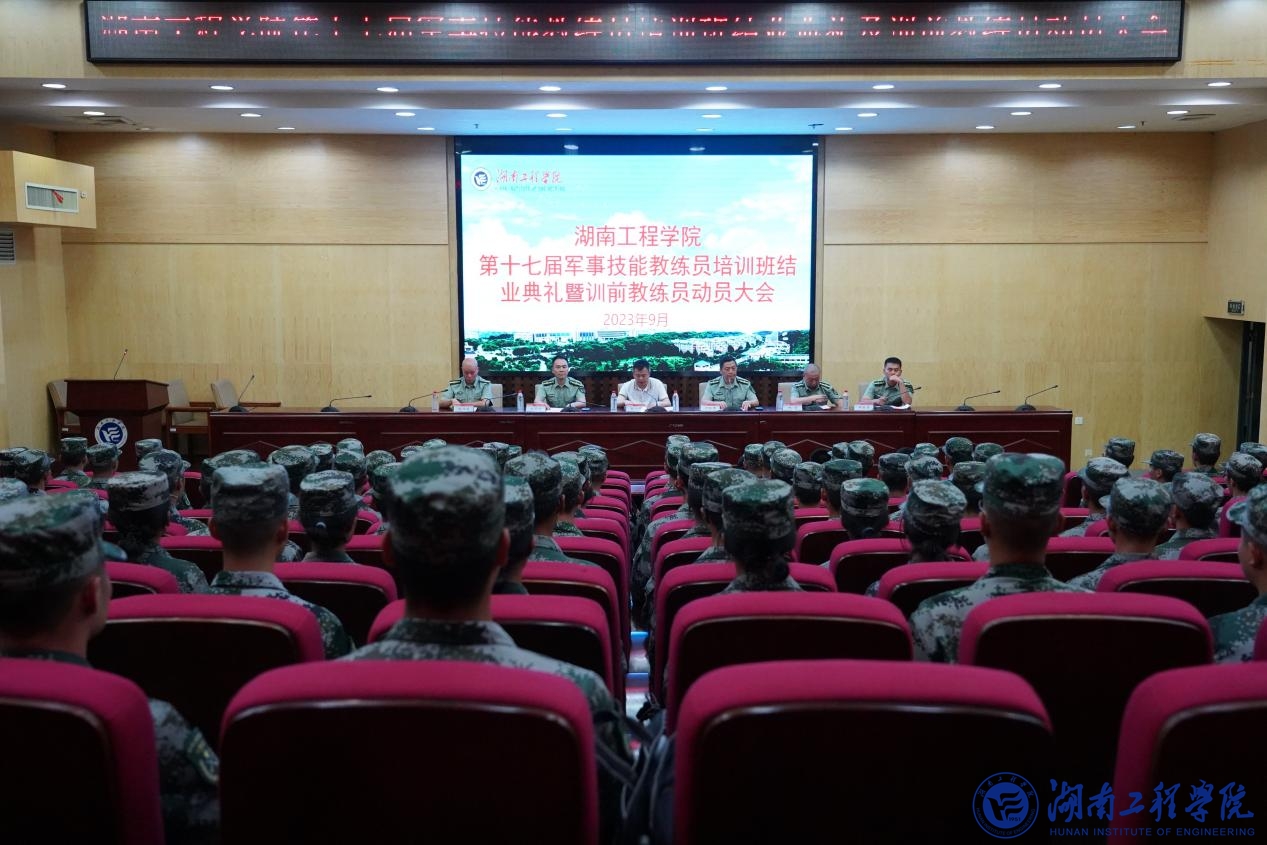 9月12日晚,beat365官网第十七届军事技能教练员培训班结业典礼暨新生军训前教练员动员大会在二报告厅举行,校党委委员、副校长张小刚,保卫处(武装部)负责人、各学院副书记、军训团各营营长及2023级全体军事技能教练员参加。