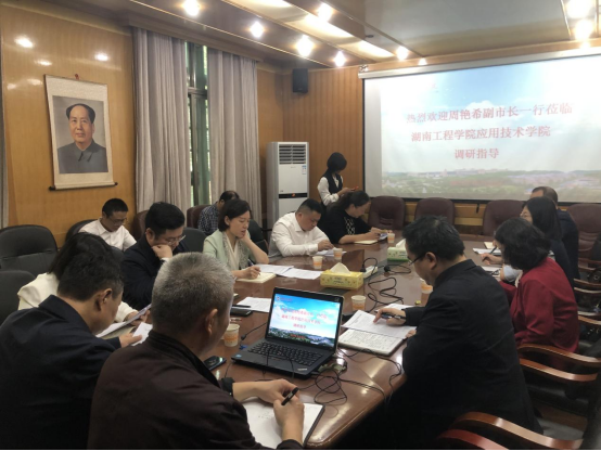 10月30日上午,湘潭市副市长周艳希等一行来学院调研。双方在学院办公楼207会议室召开座谈会。beat365英国官网网站党委委员、副校长向前,应用技术学院相关负责人,湘潭市教育局、高新区等部门负责人参加座谈。会议由向前主持。