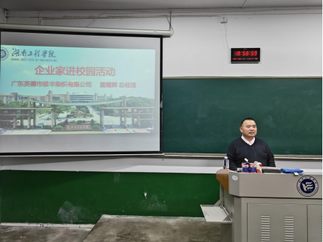 为推动毕业生更高质量、更充分地就业,提高学生就业能力,11月23日晚,材料与化工学院邀请了1988级染整工程专业校友、广东英德市极丰染织有限公司副总经理童耀辉,在第四教学楼509教室为轻化工程专业同学开展“企业家进校园”讲座,本次活动师生共计100余人参加。