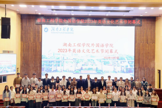 12月7日晚19:00,外国语学院2023年英语文化艺术节闭幕式在一报告厅举行。校党委委员、纪委书记齐路良,校团委书记刘琤,外国语学院院长王家义、党总支书记陈亚琼、副院长彭禹,全体辅导员、班主任代表、获奖学生及学生代表出席本次活动。