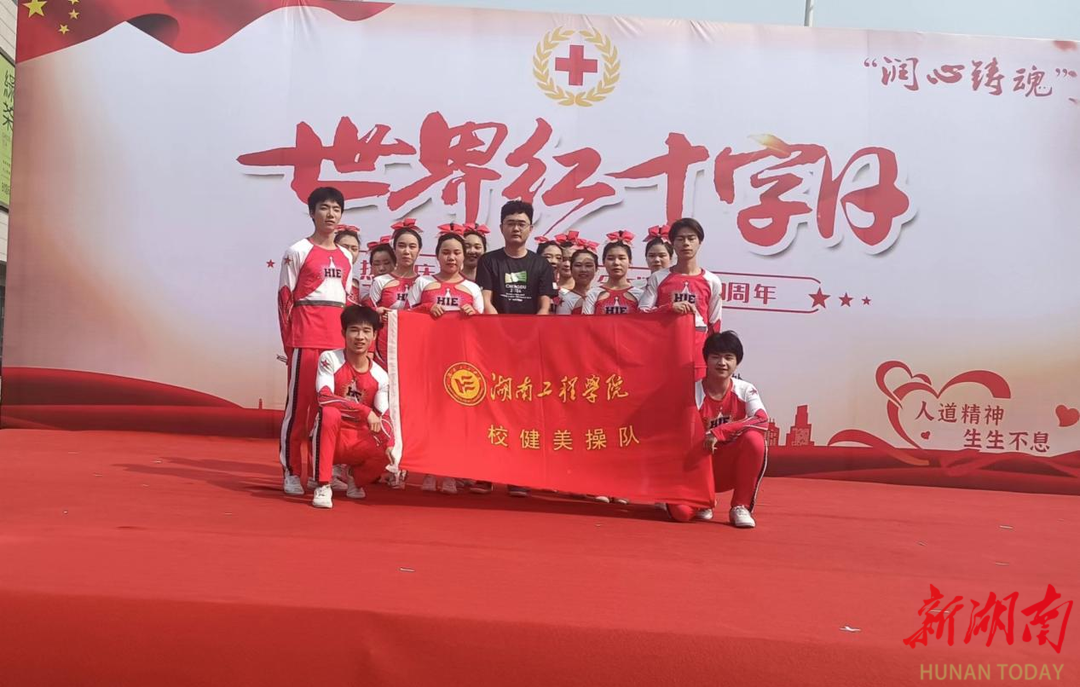 湖南日报·新湖南客户端5月9日讯(通讯员 唐慧精 李新威)5月8日,由湘潭市岳塘区建设路街道、湘潭市红十字会、岳塘区红十字会联合承办的第77个“5•8世界红十字日”主题活动举行,beat365英国官网网站健美操队在教练员唐炼、周伟峰、李新威的带领下受邀参加开幕演出,为现场观众带来了一场青春与活力的表演。