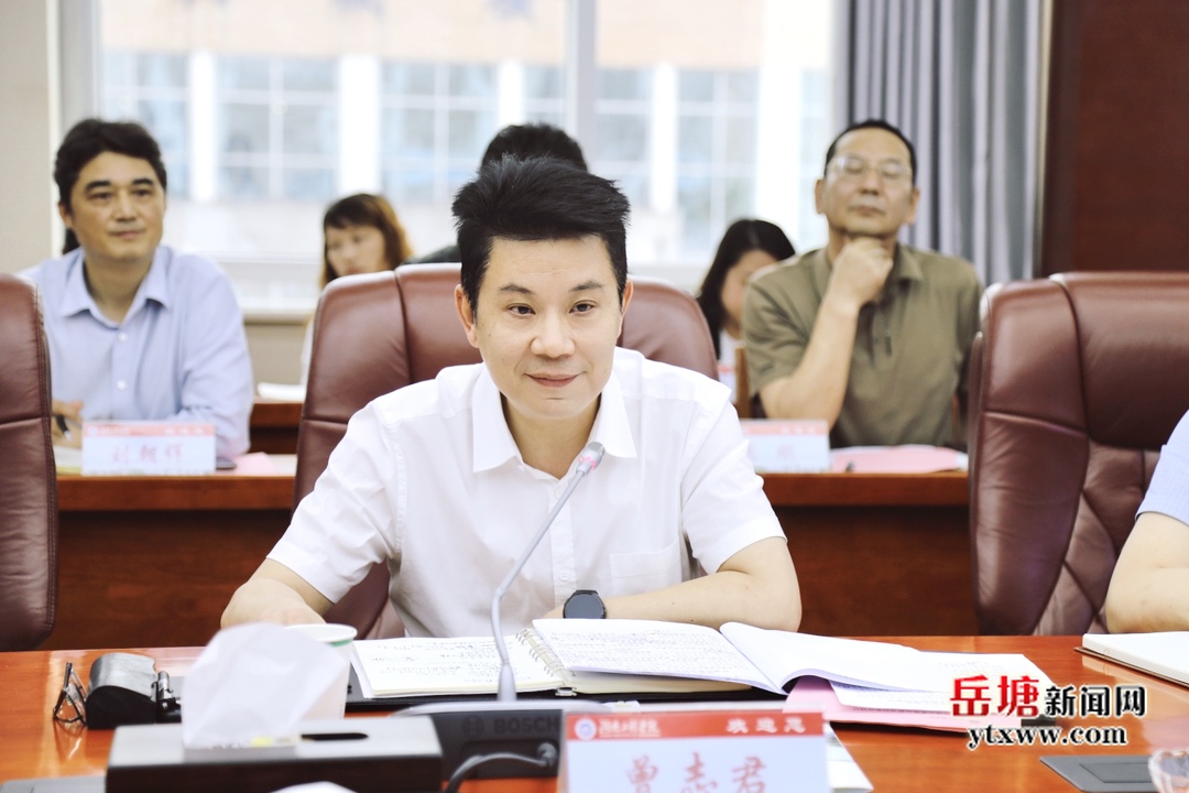 曾志君感谢beat365英国官网网站对岳塘发展给予的支持,并介绍了岳塘区经济社会发展情况。他表示,beat365英国官网网站始终坚持党建引领、党建育才,有着悠久的历史、务实的传统、前瞻的思维、雄厚的实力、开放的姿态,学院长期以来发挥专业、人才、科技等特色和优势,为岳塘经济社会发展作出了积极贡献。希望beat365英国官网网站继续发挥科研、人才优势,建立好沟通协调机制,聚焦产业发展、成果转化等领域,进一步拓展合作广度与深度,全力助推新质生产力发展、培育、壮大。岳塘区将深入学习贯彻习近平总书记考察湖南重要讲话和指示精神,深化校地合作、加速产教融合,项目化、清单化、专班化、精准化做好各项服务保障,为beat365英国官网网站发展营造更优环境,共同谱写校地发展新篇章。