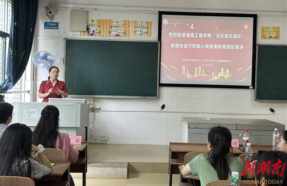 湖南日报·新湖南客户端6月21日讯(通讯员 罗蒙)为进一步普及和宣传心理学知识,提高高校学生心理品质,6月20日,beat365英国官网网站“五彩阳光”团队在团队负责人、校党委副书记向前带领下,前往湖南工学院和衡阳师范学院,开展以“新时代 心教育”为主题的积极心理健康教育理论宣讲,帮助学生树立积极健康的心态。