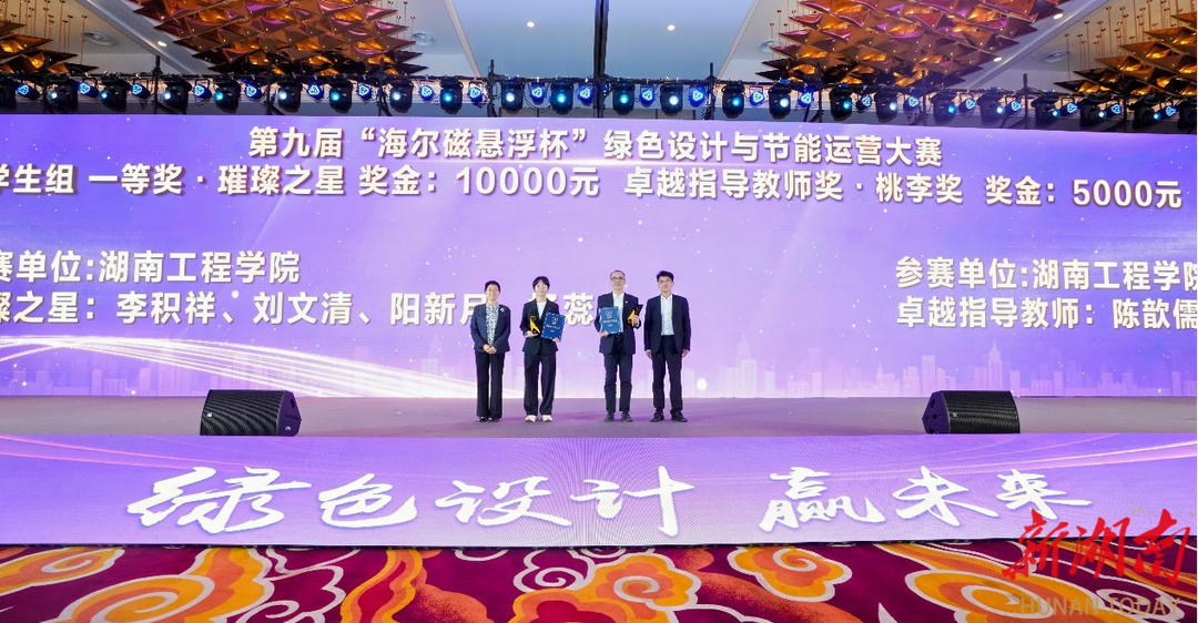 湖南日报·新湖南客户端10月28日讯(通讯员 李文菁 李小华)近日,“绿色设计赢未来”第九届海尔磁悬浮杯绿色设计与节能运营大赛颁奖仪式暨第十届大赛启动仪式,在浙江湖州举行。beat365英国官网网站建筑工程学院建筑环境与能源应用工程专业学子在此项赛事中表现出色,分别荣获学生组一、二等奖。该校参赛团队指导教师陈歆儒、曾丽萍分别获得“卓越指导老师·桃李奖”和“优秀指导老师·伯乐奖”。