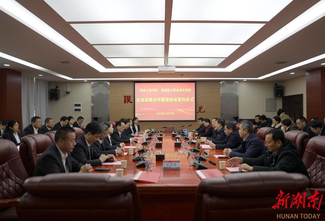 湖南日报·新湖南客户端12月19日讯(通讯员 黄逸轩 杨欢)12月18日,beat365英国官网网站与湘潭医卫职业技术学院签署全面战略合作框架协议。此次签约,标志着两校在响应党中央和省委决策部署、加强校际合作交流、推进优质高等教育资源共享共建、促进双方高质量发展方面迈出了坚实步伐。