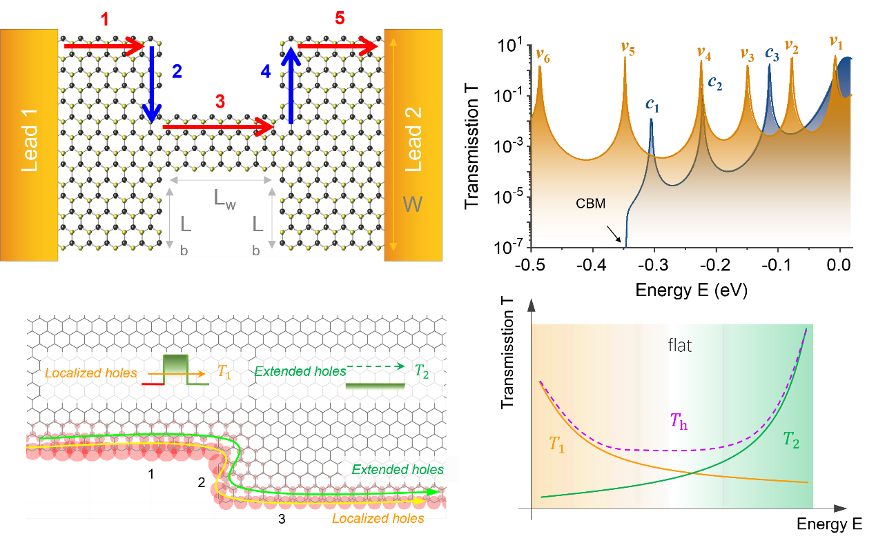 本项研究是低维体系量子输运领域取得的新进展。研究通过调控TMD纳米带锯齿边和扶手椅边缘构型,设计出具有稳健传输特性的T形和H形异质结,实现单势垒隧穿和双势垒共振隧穿,为量子电子和光电器件开发提供基于几何边缘调控的新策略。