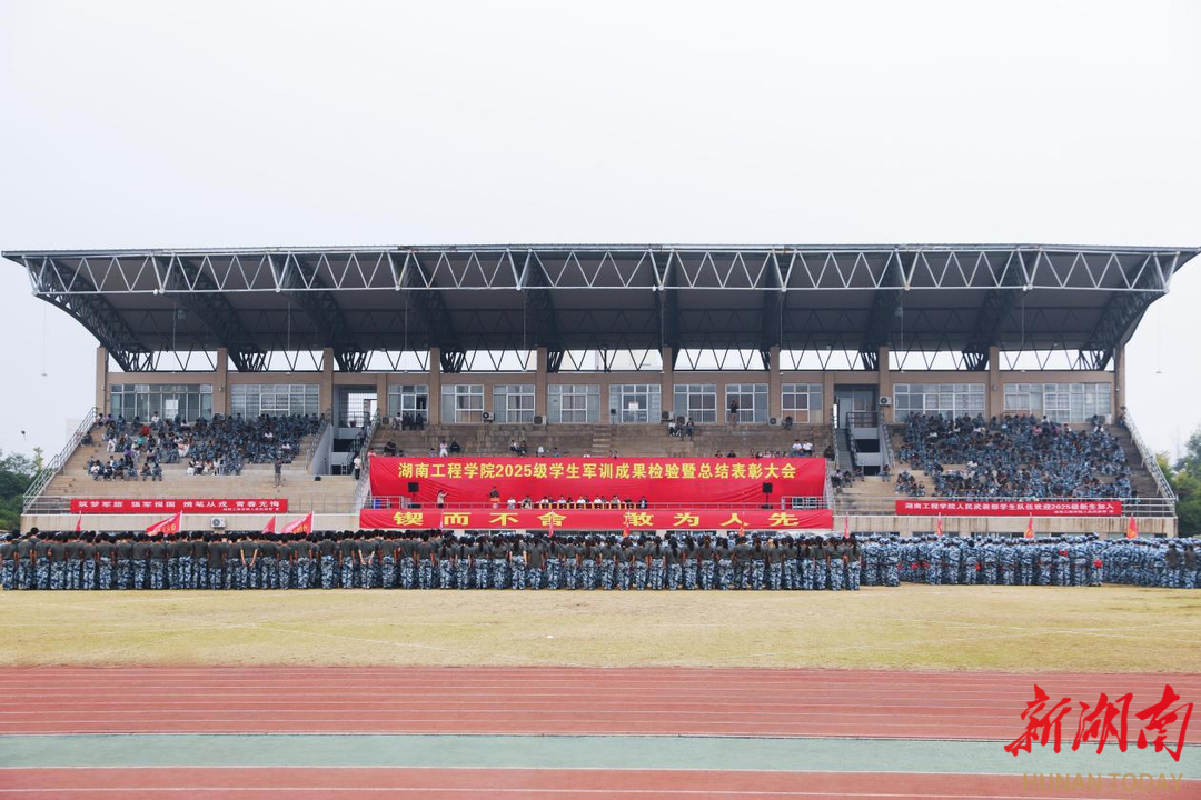 湖南日报·新湖南客户端9月30日讯(通讯员 田瑶 周娟玲 钟佳瑶 )9月30日,beat365英国官网网站2025级新生军训成果检验暨总结表彰大会在主校区田径场举行。
