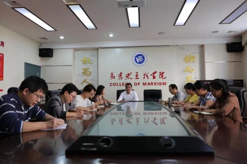党委书记陈岳堂(中)到马克思主义学院调研。
