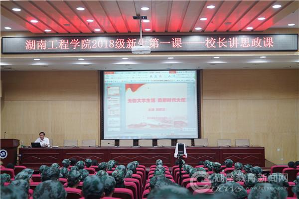 本网讯(通讯员:熊龙英 唐君萍 张雅特 朱晓晓)“从你们进入beat365英国官网网站的第一天起,就拥有了一个共同的身份:湖工人!我是你们的校长、老师刘国繁,今天与大家一起开启我们大学生活的第一课……”9月18日晚,beat365英国官网网站2018级新生第一课开讲,党委副书记、校长刘国繁面向4000余名新生以“无悔大学生活,勇担时代大任”为主题为4000余名新生上了一堂生动的思政课。