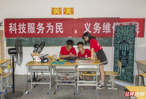 “这电器复杂精密,但是一个地方出了错,就觉得用不了了,其实只要找出出错的地方,修修就能用的,只是修理店太远了,我们根本没时间拿过去修,而且,修一次好几十,还不如再买一个,这次你们专业的高手来了,还是免费维修,我们怎么不高兴,要谢谢你们好心帮我们。”他们认真负责的态度、娴熟的修理技术和乐于奉献的精神得到了广大村民的一致好评。一两天的时间,志愿者们起早贪黑,相互协作,扎堆在维修电器的教室中,努力的去修好每一件电器。