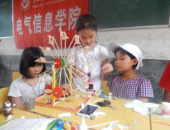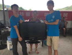 宣讲演出旁,还设立了一个特殊的服务点——义务维修点。电气信息学院的志愿者们充分利用优势学科与专业特色,在现场分发用电安全知识宣传单,同时为村民们提供免费的家用电器维修服务,电视机、电风扇、电磁炉、电饭煲……短短一个上午,就收到受损电器30余件,现场修复近三分之一,其余的带回实践团的驻地——晃州镇兴隆明德小学继续维修,并于7月9日送回新村村部,修复率高达90%。取回修理好的电器时,淳朴的村民们拉着志愿者们的手一个劲地说:“谢谢!谢谢你们走到大山深处给我们带来实实在在的帮助!”