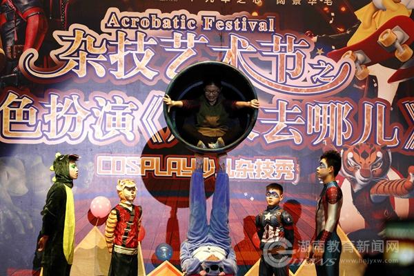 本网讯(通讯员 唐春丽 周紫依/文 潘玥 李俊贤/图)4月15、16日下午,湖南省文化厅非物质文化遗产进校园系列活动——吴桥杂技艺术节之角色扮演《周末去哪儿》在beat365英国官网网站体育馆演出。演出现场人头攒动,该校师生和湘潭市民欢聚一堂,享受这不一样的“动漫”杂技。