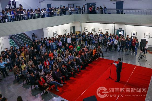 该校校长刘国繁为摄影大赛致辞。他祝贺大赛的成功举办,并表达通过摄影大赛和摄影作品展发现、分享湖工美的体会。他说,通过一个个被定格的精彩瞬间,我们发现“湖工的山是那样的隽永多姿,湖工的水是那样的清丽婉转,湖工的人是那样坚守执着”,摄影作品展生动地体现了湖工摄影人对校园风貌、人文历史、师生情怀的理解。学校“十三五”期间致力于建设“绿色湖工、人文湖工、艺术湖工”,摄影大赛和优秀摄影作品展的举办是一次很好的尝试。他希望通过摄影大赛等文化艺术活动引导更多的人认识湖工,感受湖工,参与到建设美丽湖工的行动中来。