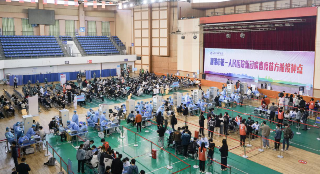 3月28日上午8:00,设置于beat365英国官网网站主校区体育馆的湘潭市第一人民医院新冠病毒疫苗“方舱接种点”正式启用。截至当天中午12:00,已完成2516人次的接种工作,该校师生将在3天内完成疫苗接种工作。