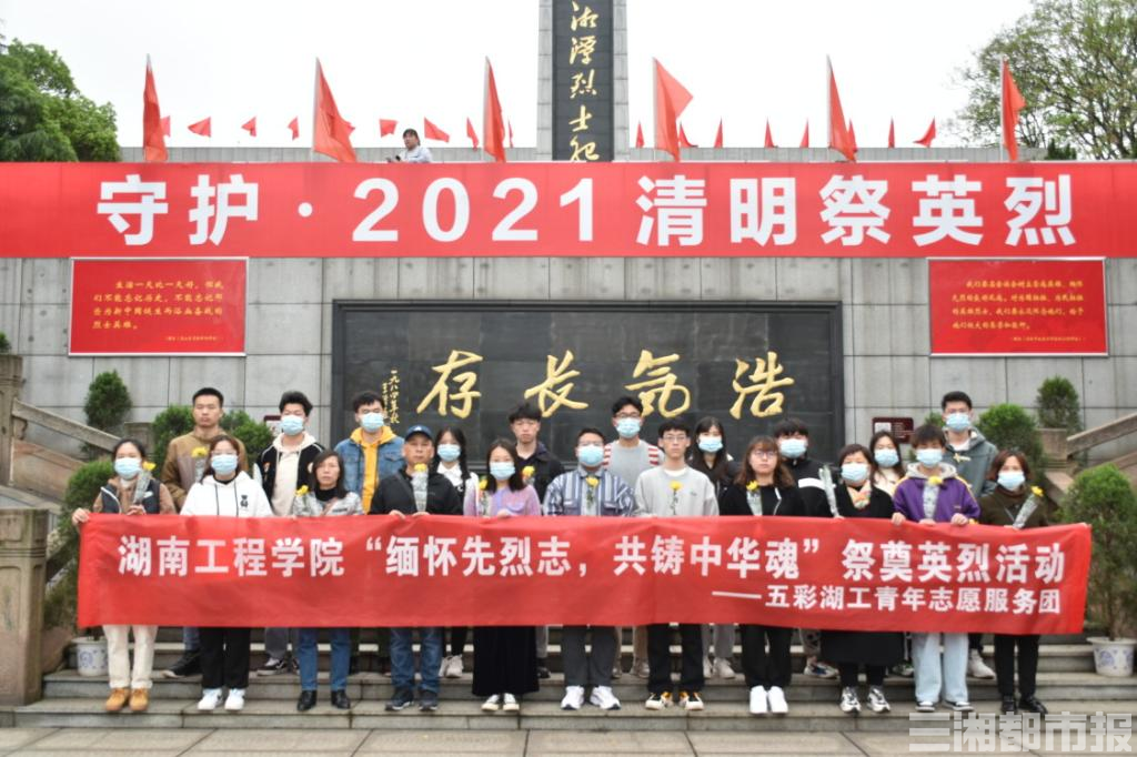 青山肃穆,翠柏凝春。清明节前,beat365英国官网网站“五彩湖工”青年志愿服务队在湘潭市雨湖区烈士陵园开展了以“缅怀先烈志,共铸中国魂”为主题祭奠英烈的祭扫活动,缅怀革命先烈,接受党史教育,感受革命初心。
