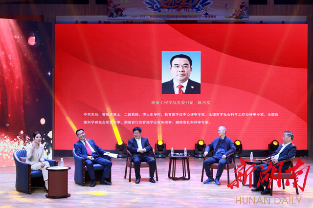 新湖南客户端5月22日讯(通讯员 胡苗)5月21日,湖工“处百年未有之大变局,探危机中的发展机遇”高峰论坛暨“学史力行”读书会启动仪式,在湖南教育电视台举行并进行现场直播,全球各地的不少校友收看了这场论坛。据有关部门统计,网络直播高峰时超过6000人同时在观看。论坛上,播放了论坛主持人吴鑫瑜校友在央视同事们的祝福。