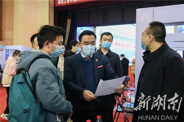 “这次带来了多少招聘岗位?”“现场报名情况如何?”“有没有已经签约的学生?”该校党委书记陈岳堂、校长易兵、副校长张小刚等来到见面会现场,详细了解毕业生的就业情况和双选会具体工作,与用人单位亲切交谈,了解用人单位的人才需求情况。同时,校领导们还认真翻阅求职毕业生简历,为其“把脉”,针对毕业生简历中出现的问题予以指导,并勉励毕业生保持积极乐观的求职心态,充分展现出湖工学子良好的综合素质。湘潭市岳塘区人力资源和社会保障局的专业人士来到现场为毕业生提供就业和社会保障宣传、面试指导等服务,帮助毕业生高效求职、顺利就业。