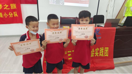“爷爷说,是党让我们过上了幸福生活!”“我是少先队员了,未来我也想加入中国共产党!”湘潭市岳塘区宝塔街道盘龙社区会议室里小朋友们用稚嫩的声音许下了庄重的诺言。7月9日,管理学院暑期“三下乡”社会实践团走进盘龙社区,为20余名长郡实验中学一年级小朋友带来了一堂生动的党史课。活动现场气氛热烈,实践团成员为广大儿童带去欢声笑语的同时,也让红色的种子在孩子心中生根发芽。