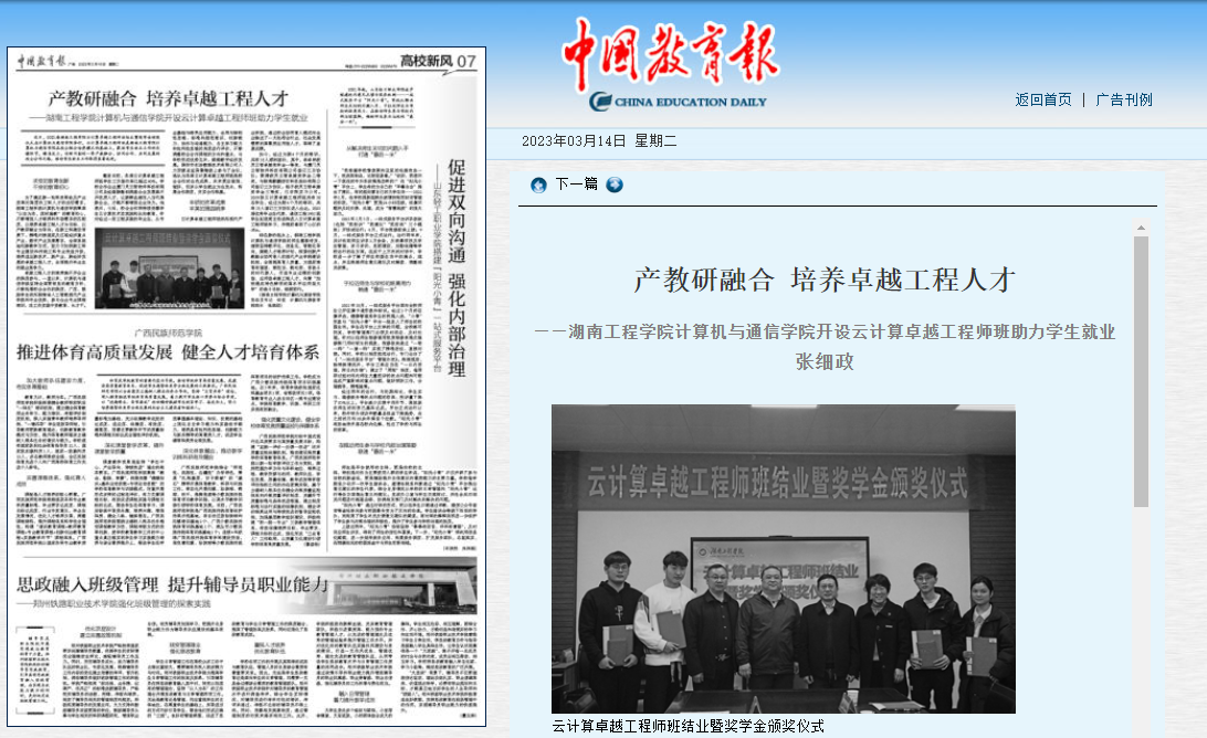 云计算卓越工程师班依托现代产业学院,通过校企协同育人模式向企业输送了一大批符合行业、社会发展需要的高素质应用型人才,取得了显著成绩。