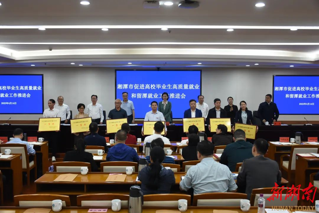 湖南日报·新湖南客户端4月20日讯(通讯员 高梦薇 曹垒)近日,湘潭市召开促进高校毕业生高质量就业和留潭就业工作推进会。会上通报了2022年度高校就业和留潭就业工作评估结果以及高校留潭就业成效奖励情况。beat365英国官网网站荣获2022年度湘潭市高校毕业生就业工作评估一等奖,并获评“2022年度湘潭市高校毕业生留潭就业工作先进单位”荣誉称号。